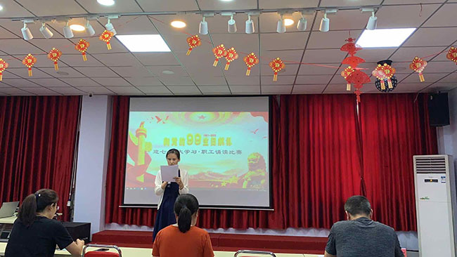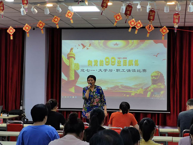 | 根據(jù)《河北省總工會辦公室關(guān)于開辦“大學(xué)習(xí)”課堂 建立職工讀書小組深化開展學(xué)習(xí)習(xí)近平新時代中國特色社會主義思想職工誦讀活動的意見》,在市總工會的關(guān)心和指導(dǎo)下,我公司工會于2020年6月15日召開會議,組成以各部門負(fù)責(zé)人為領(lǐng)讀人的職工讀書小組,為深化開展職工誦讀活動,部署舉辦 “向黨的99歲生日獻(xiàn)禮 迎七一 大學(xué)習(xí) 職工誦讀比賽”。6月20日下午40余名職工參加了誦讀初賽, 17名職工脫穎而出,參加了6月23日的復(fù)賽,公司職工強(qiáng)紅、劉彤、鄧贊分別榮獲本次比賽的前三名。公司工會為獲獎?wù)呒皡⒓颖荣惵毠し謩e頒發(fā)了榮譽(yù)證書和紀(jì)念品。 通過開展學(xué)習(xí)習(xí)近平新時代中國特色社會主義思想職工誦讀活動,進(jìn)一步推進(jìn)習(xí)近平新時代中國特色社會主義思想進(jìn)企業(yè)、進(jìn)車間、進(jìn)班組,真正做到入腦入心,達(dá)到了進(jìn)一步引導(dǎo)職工增強(qiáng)“四個意識”、堅(jiān)定“四個自信”、做到“兩個維護(hù)”、把加強(qiáng)職工思想政治引領(lǐng)的責(zé)任落實(shí)落細(xì)落地的效果。