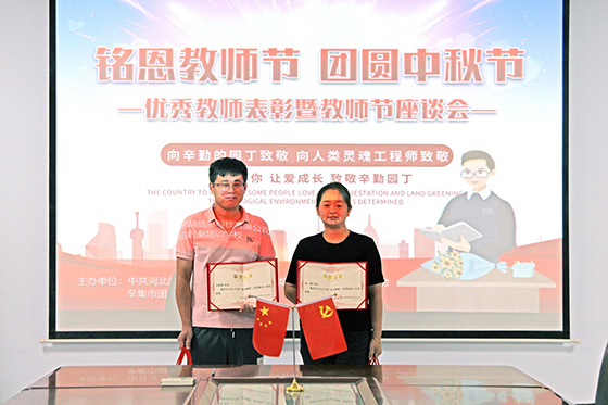 在教師節(jié)和中秋節(jié)來臨之際,2022年9月2日上午,我公司黨支部組織開展了“銘恩教師節(jié) 團圓中秋節(jié)”主題黨日活動,召開了優(yōu)秀教師表彰暨教師節(jié)座談會。本次活動的參加人員:公司支部全體黨員、辛集市國超職業(yè)培訓學校的全體教師以及公司中層管理人員。首先,與會人員通過投票方式進行選舉,李榮勝老師和邊穎老師被選為優(yōu)秀教師。李榮勝老師和邊穎老師分別發(fā)表了獲獎感言,表示今后要更加努力的工作。公司黨支部書記尚躍華為優(yōu)秀教師頒發(fā)了榮譽證書和獎品。并代表公司領(lǐng)導向獲獎教師表示了誠摯的祝賀,對學校的全體教師做出的工作予以肯定,勉勵他們再接再厲,為國超職業(yè)培訓學校的發(fā)展做出更突出的貢獻。
