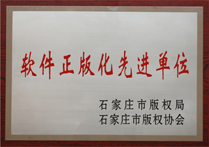 2013年9月,我公司被石家莊市版權(quán)局、石家莊市版權(quán)協(xié)會(huì)評(píng)為“軟件正版化先進(jìn)單位”。