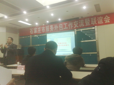 2012年1月17日,石家莊市商務(wù)局在市高新區(qū)西區(qū)金石工業(yè)園舉辦全市服務(wù)外包工作交流暨聯(lián)誼會(huì)。出席會(huì)議的嘉賓有:省外匯局、市委宣傳部、市財(cái)政局、市工信局、市科技局、市教育局、市文廣新局、市人社局、市商務(wù)局及市內(nèi)五區(qū)商務(wù)局領(lǐng)導(dǎo)。作為市重點(diǎn)服務(wù)外包企業(yè)代表,我公司董事長劉占查出席了會(huì)議并重點(diǎn)發(fā)言。