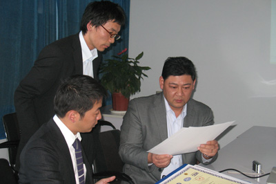 325日,日本富士通天株式會社統(tǒng)括部、企畫部負(fù)責(zé)人中田信幸先生,由日本株式會社CMC企畫部第三企畫室室長岡本聡先生和大地CMC上海分公司負(fù)責(zé)人后騰仁先生陪同來我公司進(jìn)行訪問,就今后雙方技術(shù)合作事宜與公司董事長劉占查進(jìn)行了洽談,并達(dá)成了一致意見。我公司副總經(jīng)理曹艷爽、編譯部主任強(qiáng)紅心、副主任余強(qiáng)、印前設(shè)計部吳磊參加了洽談。