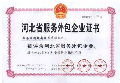 我公司被評定為"河北省服務(wù)外包企業(yè)"(證書)