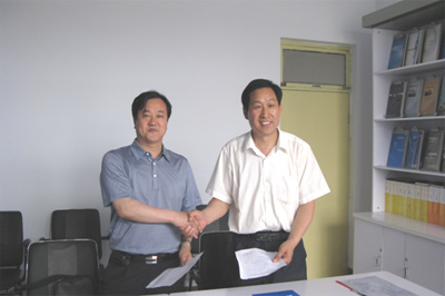 On May 26, 2010, the president Li zhengshuan, vice president Feng Taimin, Liu Rongqiang from foreign language school of Hebei Normal University, came to visit and discussed with leaders of our company about the matters relating to establishing practice base for the postgraduates of Master of Translation and Interpreting. The two sides reached the cooperation agreement and signed Agreement of establishment of practice base for cooperative cultivating postgraduates of Master of Translation and Interpreting.  Our company becomes the practice base of postgraduates of MTI from foreign language school of Hebei Normal University.
