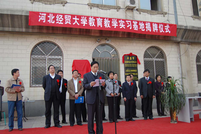 | 為了促進高新技術企業(yè)發(fā)展,培養(yǎng)科技人才,河北經貿大學把我公司確定為河北經貿大學外國語學院教育教學實習基地。 2008年11月4日,在公司門前隆重舉行河北經貿大學外國語學院教育教學實習基地揭牌儀式,辛集市政協副主席陳蘭章主持會議,出席這次儀式的領導和來賓有: